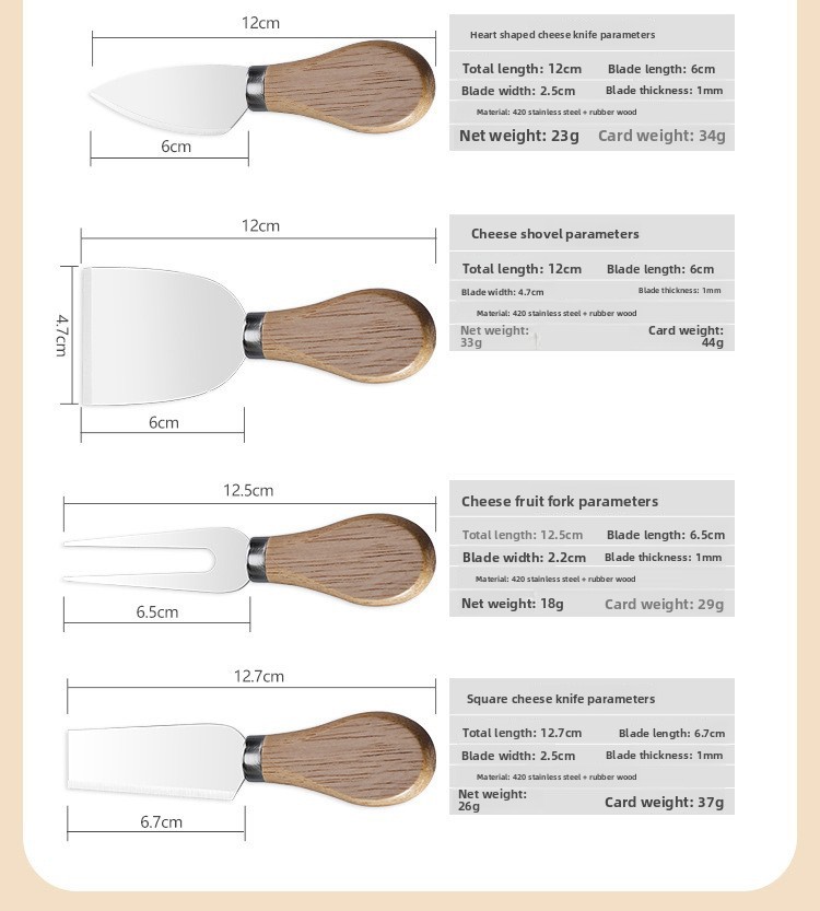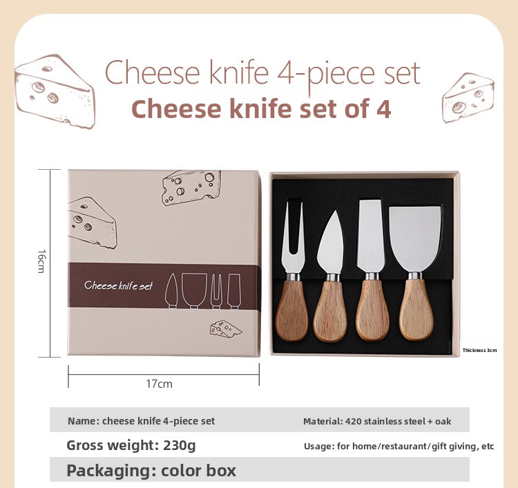 4-Piece Set: Complete cheese knife set for various cutting needs.